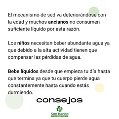 💧El mecanismo de sed va deteriorándose con la edad y muchos ancianos no consumen suficiente líquido por esta razón.